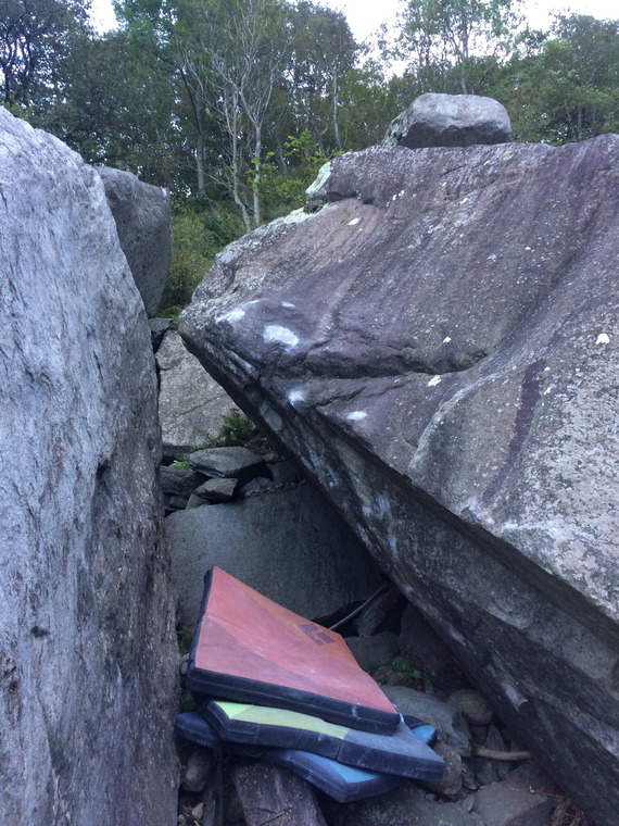 Sit-start with sidepull, climb up and mantle out left.