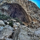 There are two old multipitch routes at the right vertical rim of the cave.