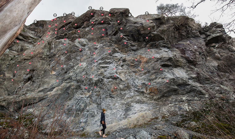 Öppet projekt med "8a?"-grad i boken blev snabbt avklarat, med en lite lägre grad... Fin men kort gradsättande sekvens. Bra stick i vårsolen hjälpte.
