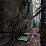 Hyvä laatuista kiveä. hyvillä alastuloilla. Vasemman puoleisin sektori tarjoaa pääosin pystysuoraa boulderia n. 5 metrisellä kalliolla. Oikean puoleisella sektorilla taas pääosin korkeita bouldereita tai matalia köysireittejä. Siellä kallio kaatuu osittain negaksi.Kuivuu hitaasti. Lähestyminen 7- 10 min. Lapsiystävällinen maasto ja lähestyminen. Kaikkia sektoreita voi suositella hellekelillä. Yli 30 reittiä. ALUE SOPII ERITTÄIN HYVIN HELLEPÄIVIEN VIETTOON.