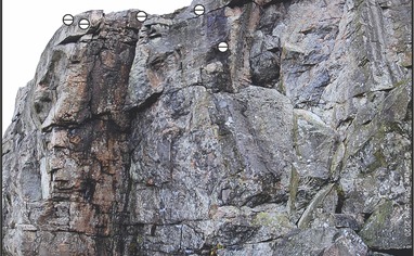 From Göteborg take motorway E6 northwards. Leave the motorway at exit 86, Kungälvsmotet (signs for Marstrand) and follow road 168 towards Ytterby. In Ytterby, turn left towards Kärna. In Kärna, turn right at the T-junction and then directly left at the roundabout. Follow the road for about 3 km and then turn left (signs for Hållsunga). After about 800 m drive along the gravelled road, you should be able to spot the crag to the left (above the tree tops). Thanks to very cooperative landowners (make sure they stay that way!) you can park on the field directly by their house (keep low profile and put SEK 20 in the box!).
