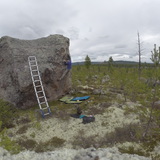 -Hygget is a large sector with boulders dispersed on sandy moraine near the shore of the river Ljusnan. The forest in this sector consists of clearings of various age and is almost exclusively made up of young pine trees. Most boulders are found in an open setting and dry relatively quickly after rain. Landings are generally flat and quite soft due to the sandy soil. Approaches are short and easy.