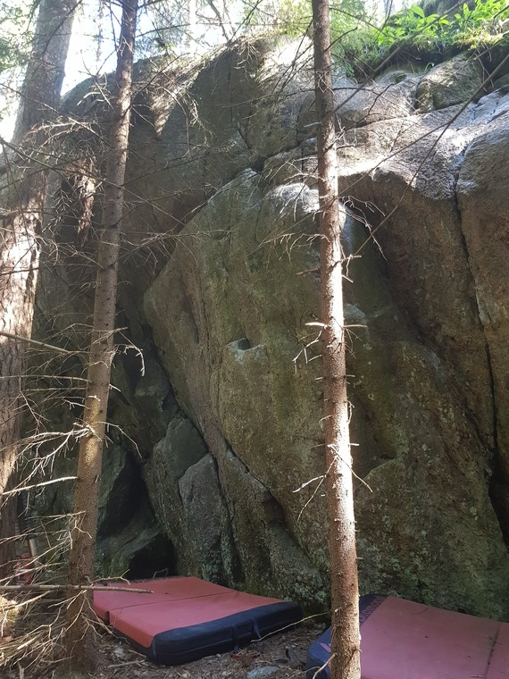 Sit start. A close neighbour of Harvoinkuiva but climbs mainly the crack.