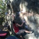 Start: höger hand på slopern högt upp vänster hand på en skön crimpnedanför till vänster