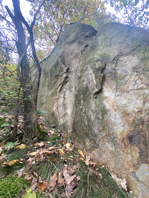 Středem úzké plotny n.v. Poznámka: Vlevo od hlavního masívu. Dolézá se kousek vlevo od cesty Levoboček