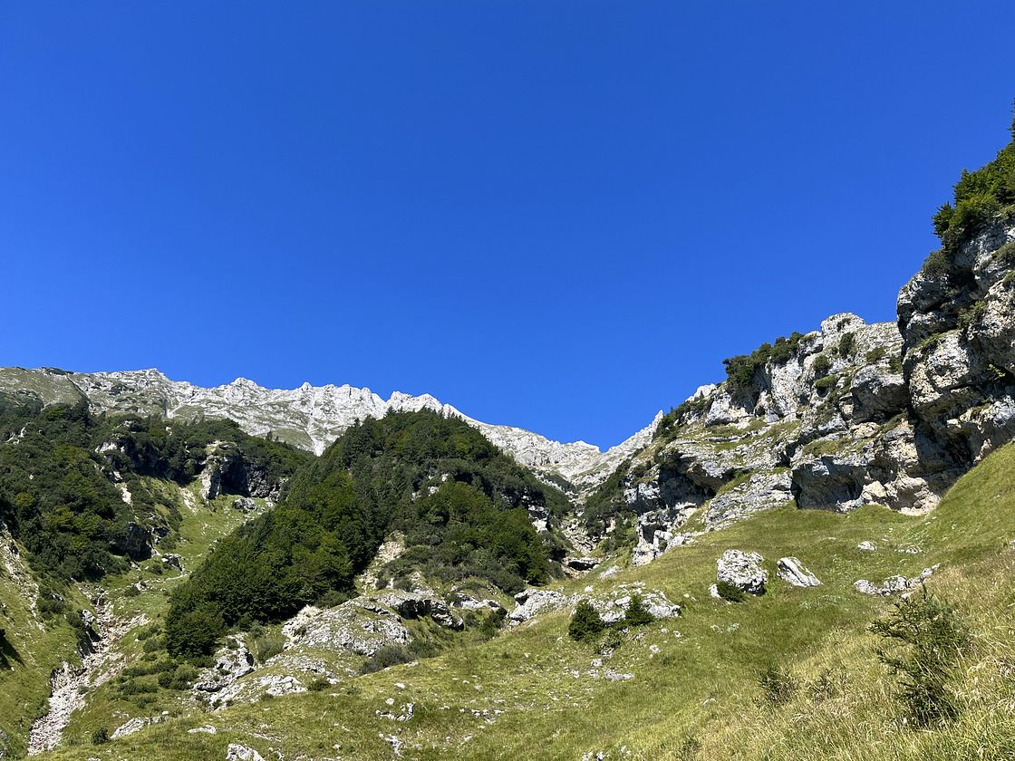 Nevertheless it is well worth to check this crag out even if you are not planing on climbing here, it is one of the most beautiful hikes around Innsbruck. (The anchors are double bolted, but are are connected by climbing rope not by a chain, there are some quickdraws left on the wall, check them for sharp edges before use)