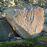 The boulder are high-quality granite. It´s a compact granite, with many crimps, slabs, and big holds. You will find, good slabs and dynamic and athletic movements.