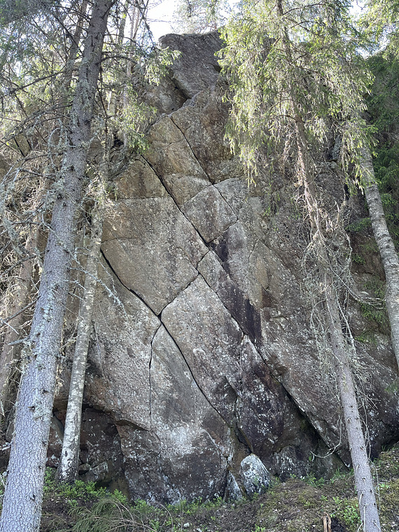 Varied crack system with some technical jamming. The crux is wide fingers.