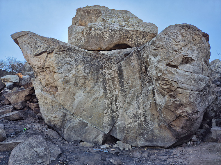 Sit-start on the right side of the main face, in a slight overhang and work your way up on good jugs.