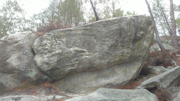 There and back traverse of L'Effet Larguant. Traverse left until the end of the one way traverse. Turn around and traverse back.