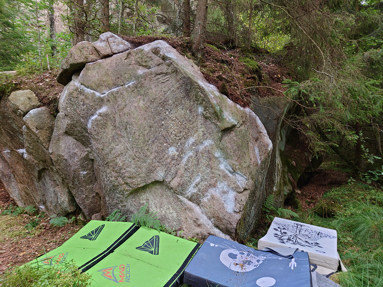 SS, höger hand vid sprickan åt höger, vänster hand på arete.