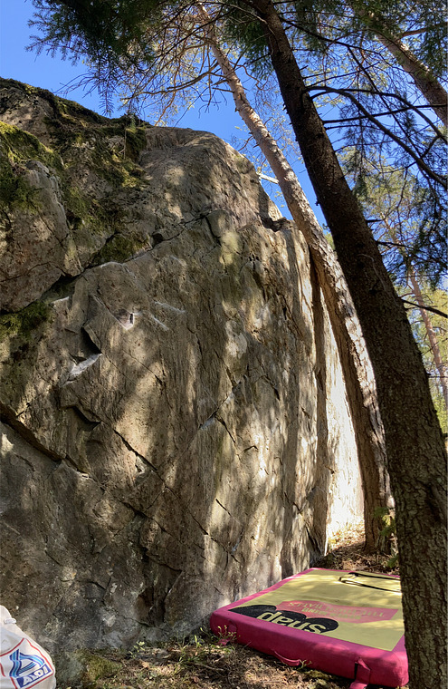 FA. Climbed quite a few versions of this, but the easiest version uses the diagonal ramp, and is the most natural line. Originally eliminated the ramp, and that version is a tad harder… but eliminates are stupid so people are free to Climb it and Note it in their comments… but lets keep things natural and only list lines, that ain’t idiotic ehoboostin’ eliminates.