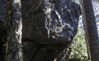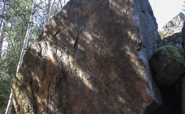 Different kind of boulders, some easy with really interesting shapes, also tougher problems. Potential to new routes.
