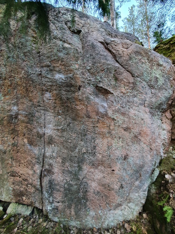 Left hand from sloper hold, right hand lower down on good sidepull. everything right of thin crack excluded (also big foot looking like a loose rock).