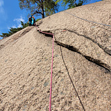 Starter i gammelt stenbrudd. Begge ruter går til topps.