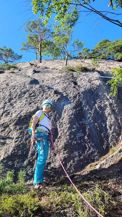 Siste taulengden til topps. Mulighet for mix klatring.