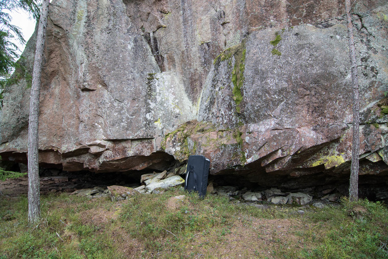 Start from left side-pull and right crimp at about head hight and straight up. Downclimb on left side. Opposite of "Bussen till slussen"
