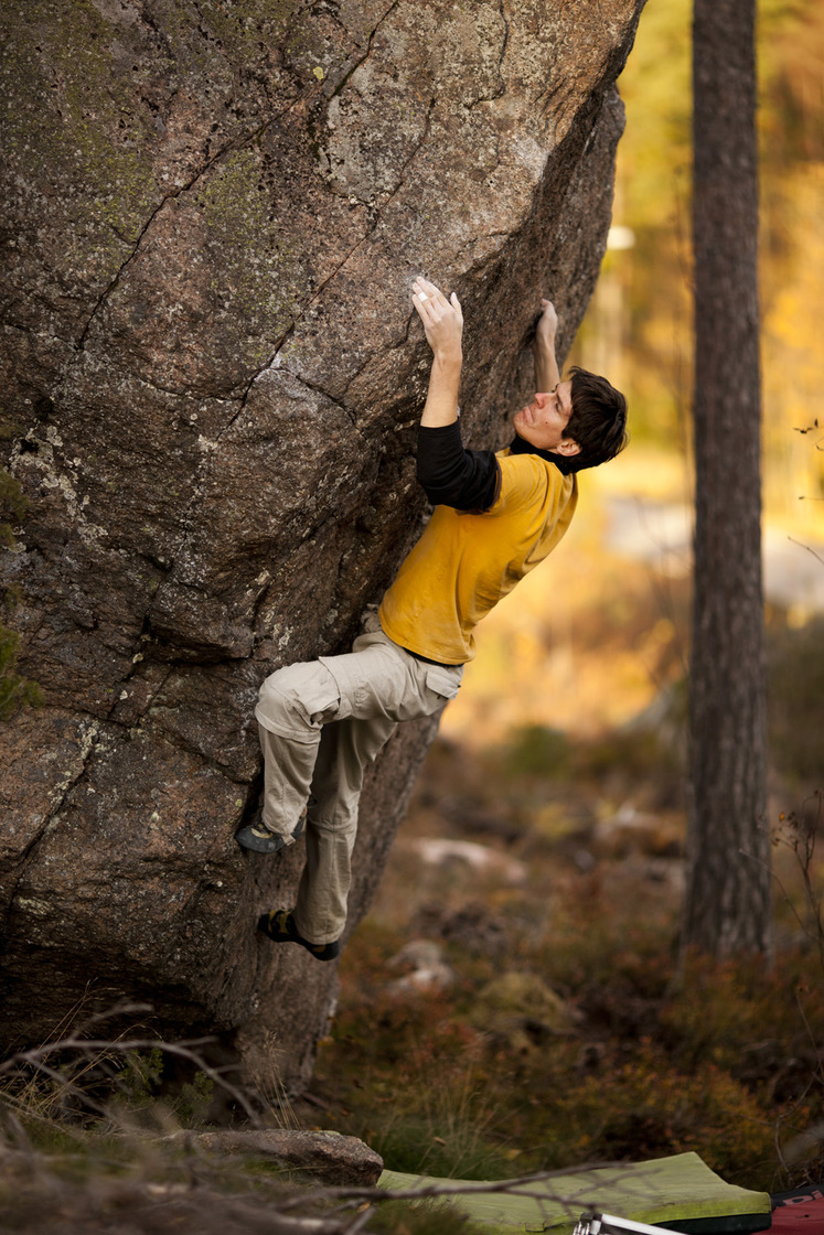 Särkynyt kivi is a very good bouldering rock close to the Helsinki in Kirkkonummi. It's mainly routes between 6A and 7B with good landings. The rock dries very quickly after rain, or after winter, which makes this a very good place to start each season.