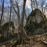 Alb-Kalk. Teilweise etwas brüchig. Landschaftlich sehr schöner Sektor mitten im Wald zwischen Klingenstein und Arnegg.