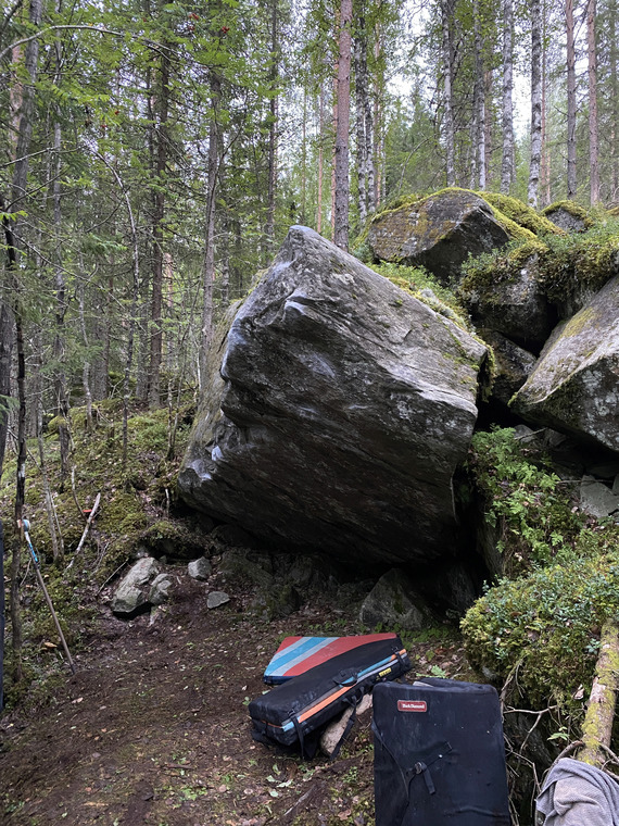 Yksi parhaimmista Pohjois-Karjalan bouldereista! Ehdoton klassikko, joka kuuluu paikallisten klassikkojen Sithin paluun ja Mahjongin seuraan. Yksinkertaista, mutta niin kaunista kiipeilyä. Kivenlaatu on parasta mitä Suomesta voit löytää. Kuivuu hitaasti, mutta hyvää kannattaa odottaa.