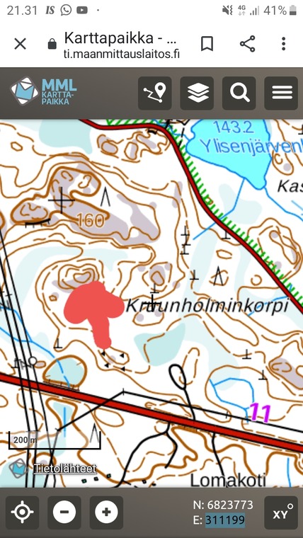 Kuvassa Etelään aukeavan Tyynenkallion sijainti. Siinä eniten reittejä. Muutama vähän korkeampikin. Hyvä kivenlaatu ja hyvät alastulot.Reittejä yhteensä 19 kpl greideiltään 6A- 7B. Tienvarsi sektorilla 1 laadukas just ja just nega reitti, joka sopii hyvin hellepäivän ratoksi. Olemattomalla lähestymismarssilla