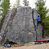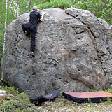 The most difficult lines of the area are graded 6C+: Kosteuskäyrä has pockety crimps typical for the sector. The sitstart Korpikuusen kosteuskäyrä adds to it a couple of technical and tiring moves. In contrast, Porilaisten paini has vertically oriented holds. Radula offers short arete wrestling, and Käsihissi requires a bit of wingspan.