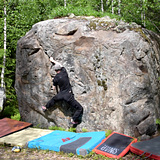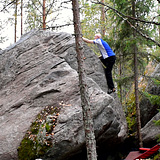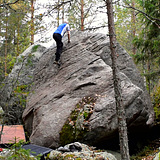 Kuusikorpi is a good crag for climbers searching for grades 6B+ and easier. The near-vertical walls and slabs have ample amount of holds. The main boulder is somewhat high, but most of the blocks are low, especially on Kivennysä-sector, and on the five "Hilltop-sectors" (e.g. Neulaskammo) north of it. Unusual to Finland, the walls have lots of pockets, and some of them are quite big. The pockets are often oval or elongated, so they are good edges and crimps. We recommend visiting the area just for the sake of pockets and other shapely holds. The Poketti sector and the north face of the Kuusikorpi sector are so holey that they resemble the La Dalle à Poly sector at Éléphant, Fontainebleau. The area has less slopers than the other crags nearby. The stone quality is mostly good. The surface is rough in a few places, and it has excellent friction. Landings are mostly good or decent. Kuusikorpi is quiet and remote, even so that mobile 4G reception is sometimes poor. It is best to load the topos in the phone beforehand.