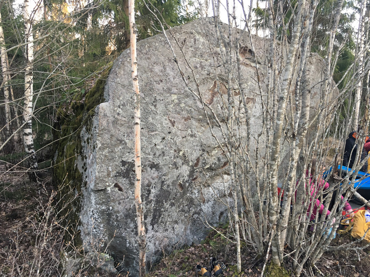 Stand start. Top-out straight up without left arete