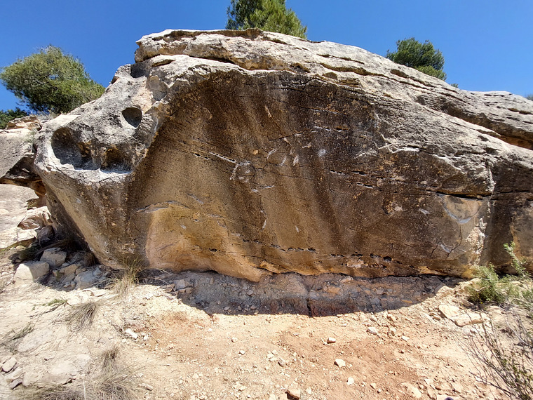 We have found this boulder already brushed in parts and with a build landing. If you know something about that, please contact us.