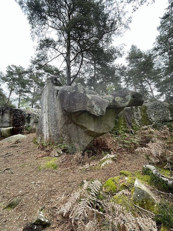 Start visible on the other picture (start directly on the opposite side of Le Cyclope). Traverse left around the nose/prow and exit in Le Cyclope from the jug