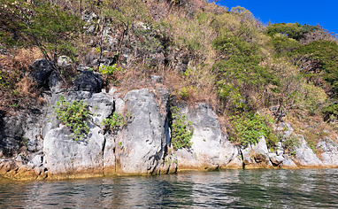 Approach from 'Playa Punta Tzancuil' or by paddle board. Traverse along the rocks or swim to get to the starting positions. After 8AM there are boats/lanchas sailing relatively close (50m) to the roc... Read more