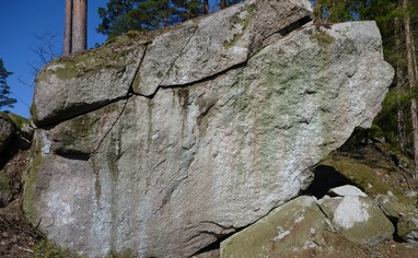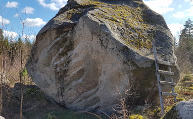 🚶🏽♀️🚶 Approach paths are marked on the map. For the main areas follow the small tractor road north-east and when reaching the old clear cut turn left and walk north-west. Here you can see "Hands Landa" and the X-files boulder. To reach the boulders in the forest to the north continue along the small path. To reach the "Hidden blocks" from the parking continue along the forest road 60 meters and the blocks are 15 meters in the forest on your right.