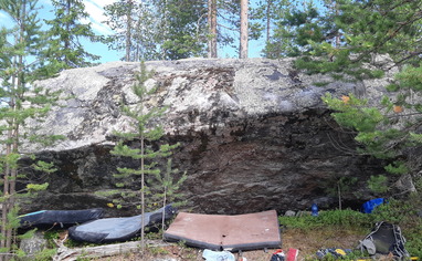 I believe that the block is somekind of daytrip place, as there is firepalce underneath, and i have found stories of it from facebook group. Two easy sides of it where quite clean because people climb to the top when visiting there. Done so atleast for 55years. So if there is other people, behave, and try open the idea of our hobby nicely.