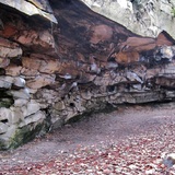 Mise à jour (mai 2009) : l'état de l'auvent du Calvaire ne permet plus une pratique sécurisée de l'escalade : ne pas essayer les voies de la grotte! D'ailleurs, un bloc de 16,5 tonnes a été extrait du toit le 4 mai 2009 (celui-ci trône désormais tranquillement sur la platière).