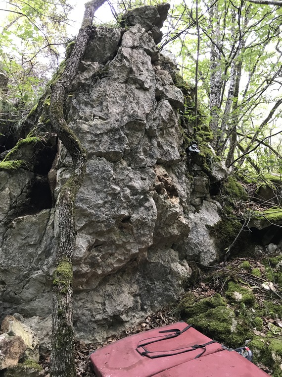 Champs de ronces en haut, il vaut mieux désescalader le bloc pour descendre.