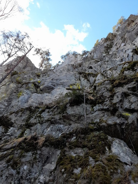 4-5 boulderproblems split by good rests. A few loose blocks in the crack 4 bolts up.
