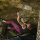 Nådde upp med ett par fingrar på sloperrampens hörn. Ändå ordentligt tung. Men med en sessions betafunderande sätter jag ändå 7a.