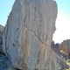 There is a faint cairn where the path will eventually form up. It's about 250m uphill hike to the boulders.