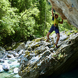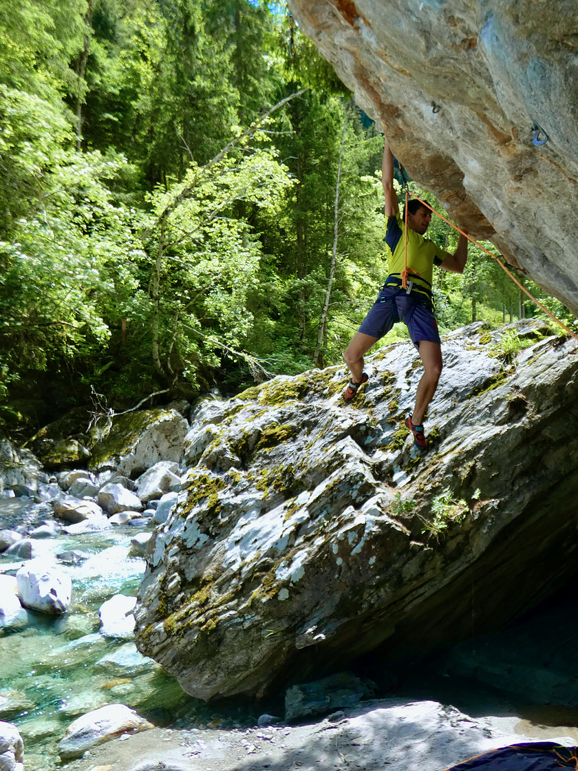 This sector was set up by Hansjorg Kainzer in 1998. Markus Schwaiger freed the hardest line “extension” in 2001, then Christoph Muller bolted the last line “El Fujo” in 2005.