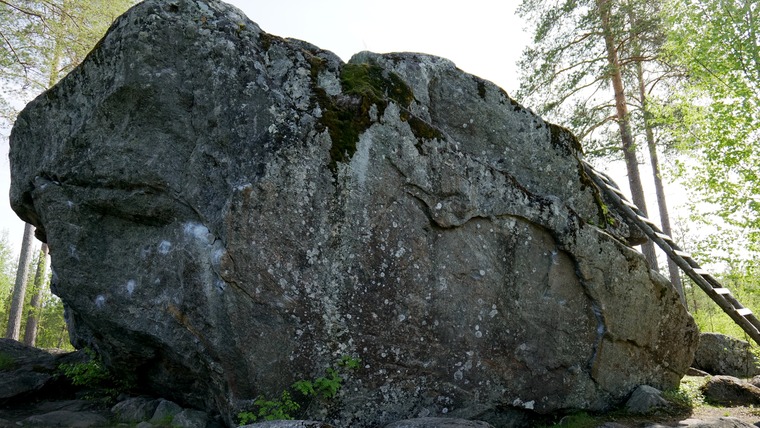 Direct topout of Sabamies. Standstart from two pinches, take three really small edges, lock off to arete and topout left. Topout right via drunken woods is for pussies.