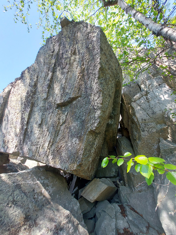 Varmaan luokkaa 7B-C. Tosi siisti blokki roikkumassa kahden kiven välissä.