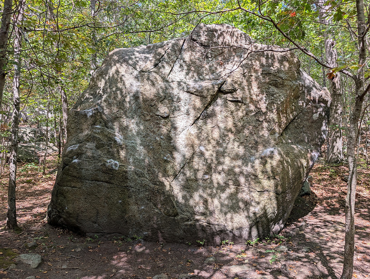 This is the stand start on the west side of the boulder face. Stand start matching both hands on the sloper shelf. Work your way up using a few nice pockets and additional sloped shelves.