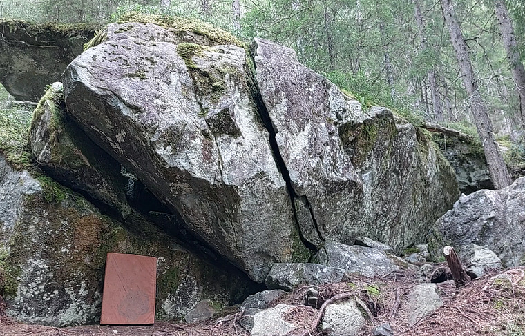 20meters above Bruno Bloc. sd underneath small roof, trav. to left and mantle out.