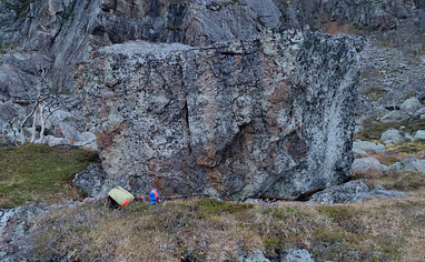 Several gravel pockets along the road offers great parking possibilities. No cellphone reception, so bring a buddy. 600 meter hike from the road, towards the valley NW of Pettersengaisa. Read more