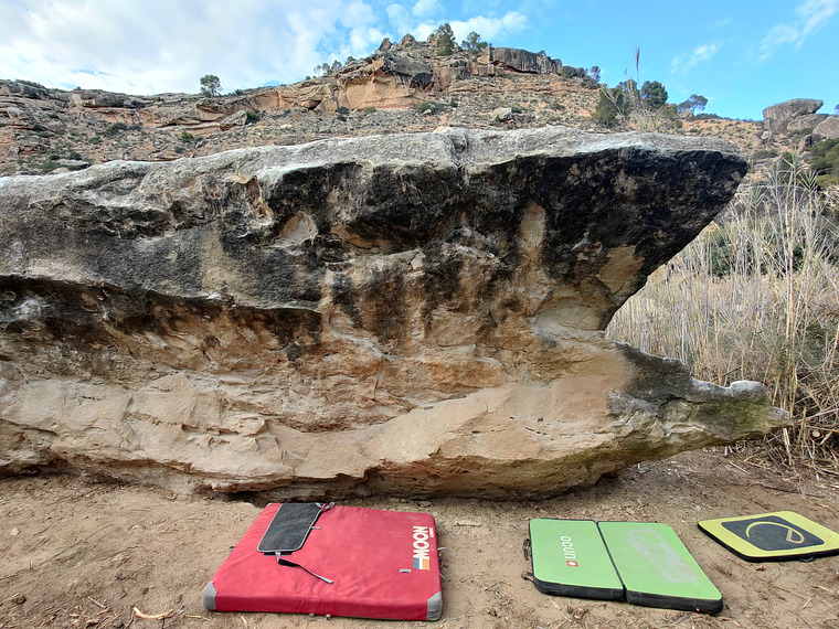 Hardest boulder on the Block. Reachy precise move to get the small three Finger crimp close to the top, really good