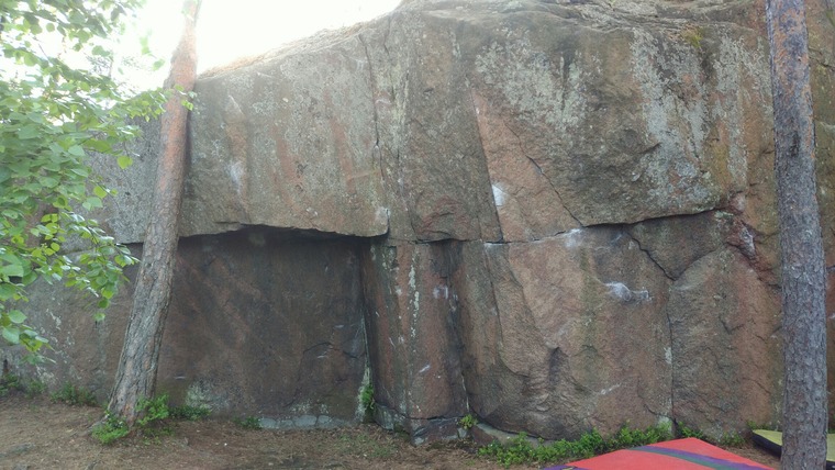 Standing start from horizontal big hold, HUGE shelf on groundlevel eliminated. Tops out on left side of corner.
