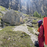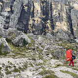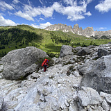 The bouldering area is located at 2000 meters and is among one of the most famous climbing areas in South Tyrol, the Frea crag, with its over one hundred pitches of rope. In the months of July and August the traffic noises of the pass road can be annoying, but the atmosphere and the mountain environment are fantastic, especially in the evening when the slope is covered with orange light. The boulders are clearly visible from the road and under the large walls, there are passages on the overhang, vertical and slab on holes and flared notches.