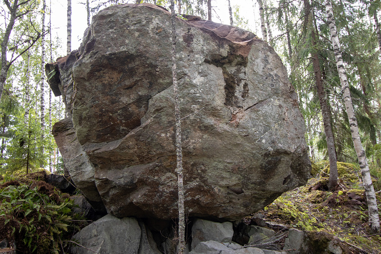Same start as in Avohyllykkö, but topout via slab behind right corner