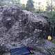 Rock leaning on a fir tree