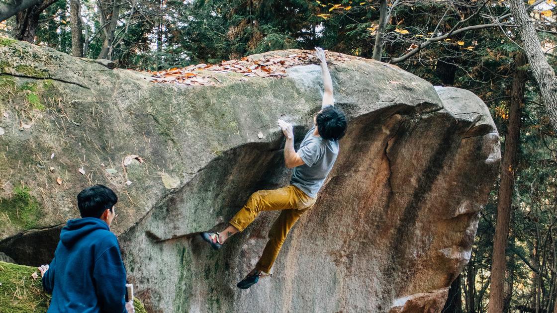 The rock type of Mudeungsan consists of granite and andesite, and the climbing style is bouldering.